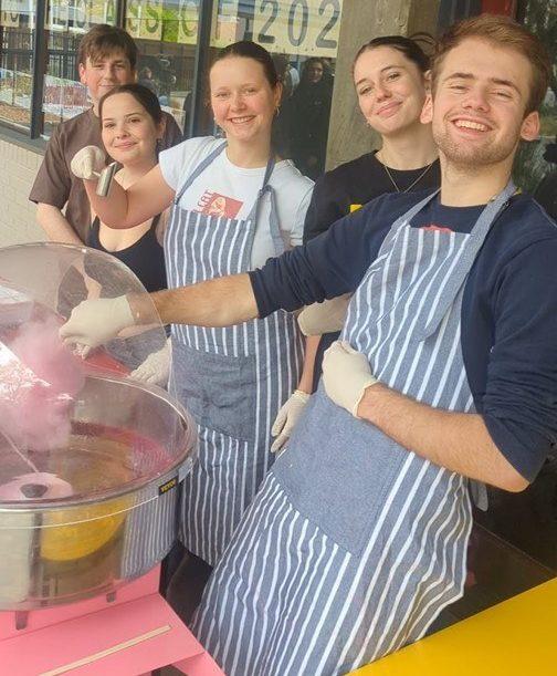 Shannon, Mikayla, Emily, Liv and Lachy spreading joy and sharing fairy floss.