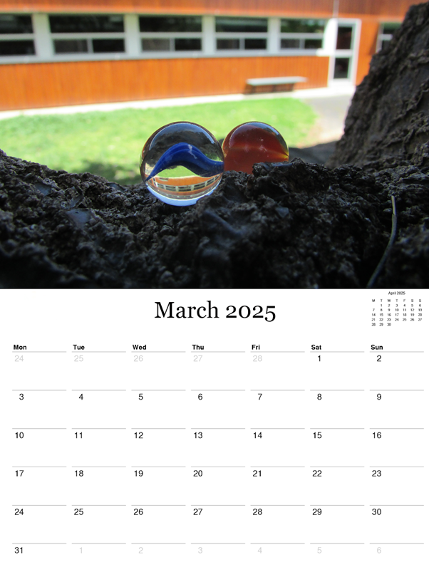 This term students completed calendars, which take some time to create and perfect the images in Photoshop. To work with Photoshop is a highly sought after skill in the design industry. To be a specialist in that field requires you to continue your studies in Visual Communication and Design or Photography.