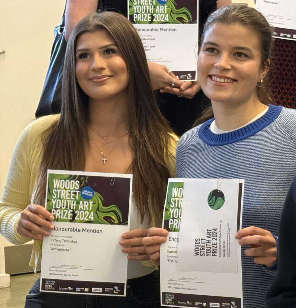 The Woods Street Youth Art Show received over 100 submissions from the Hobsons Bay area for its biennial Youth Art Show, running from November 14 to 29. Four of our students were shortlisted: Year 12 students Harriet Ronchi and Violet McCurly, and Year 11 students Han Nguyen and Tiffany Temuskos. We are especially proud to announce that Harriet received the Encouragement Award along with a cash prize, while Tiffany earned an Honorable Mention and a gift certificate for art materials. These students have demonstrated outstanding talent, and we are incredibly proud of their achievements.